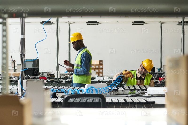 Два интеркультурных инженера в мастерской