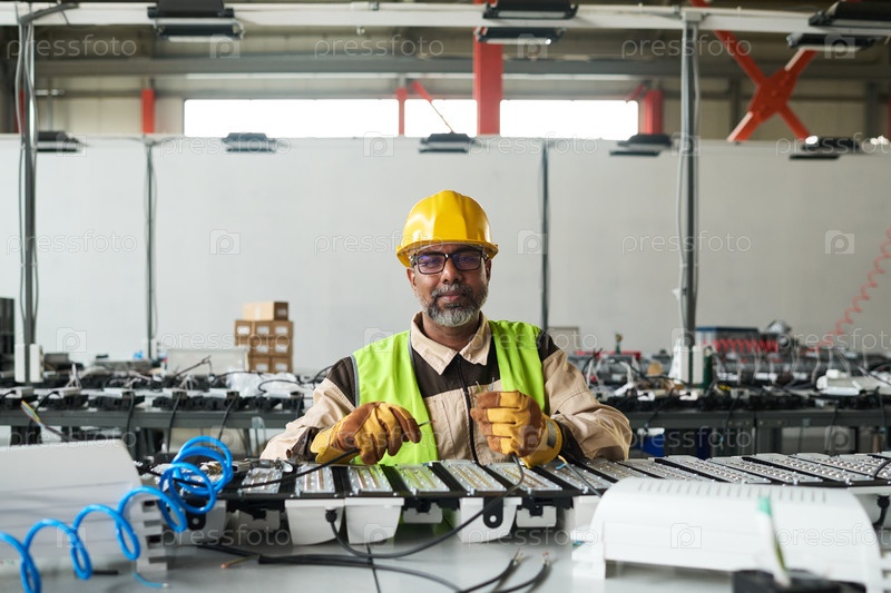 Уверенный в себе зрелый мужской работник фабрики
