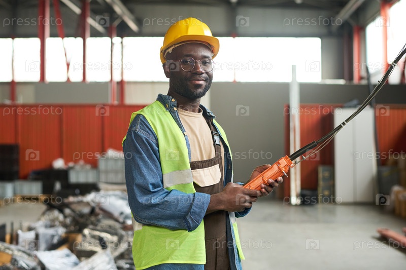 Молодой афроамериканский фабричный инженер