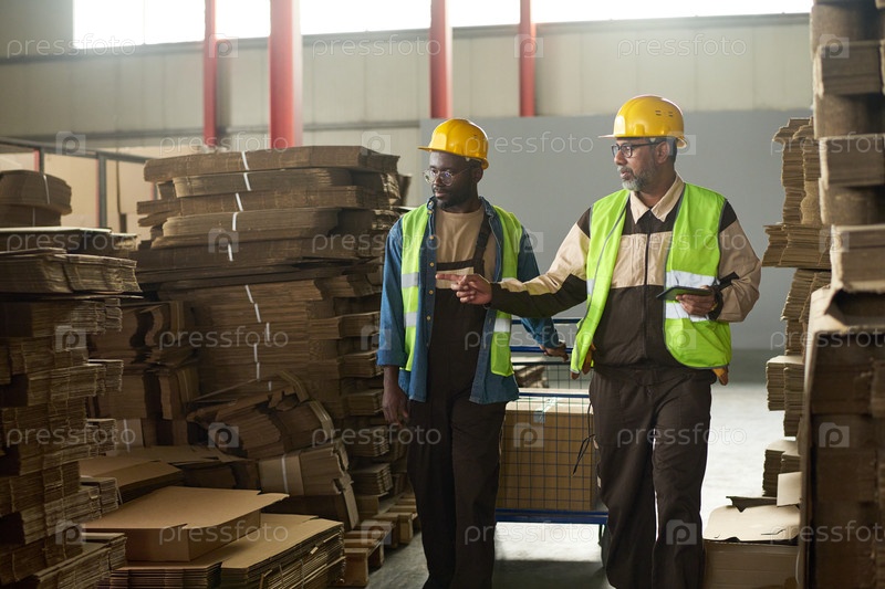 Босс разговаривает с подчиненным, тянущим тележку