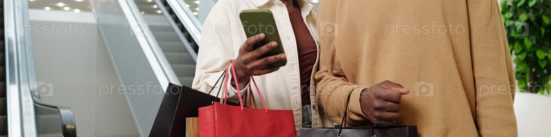Пара со смартфоном на эскалаторе
