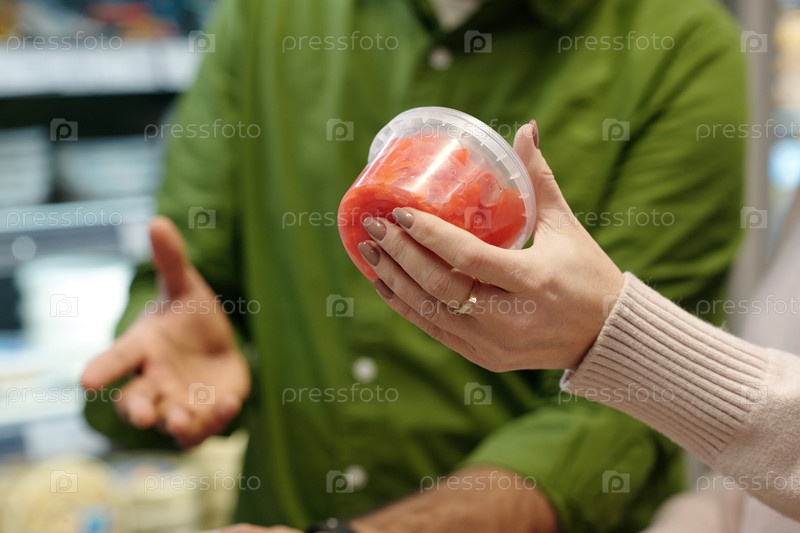 Зрелая женщина выбирает еду в супермаркете