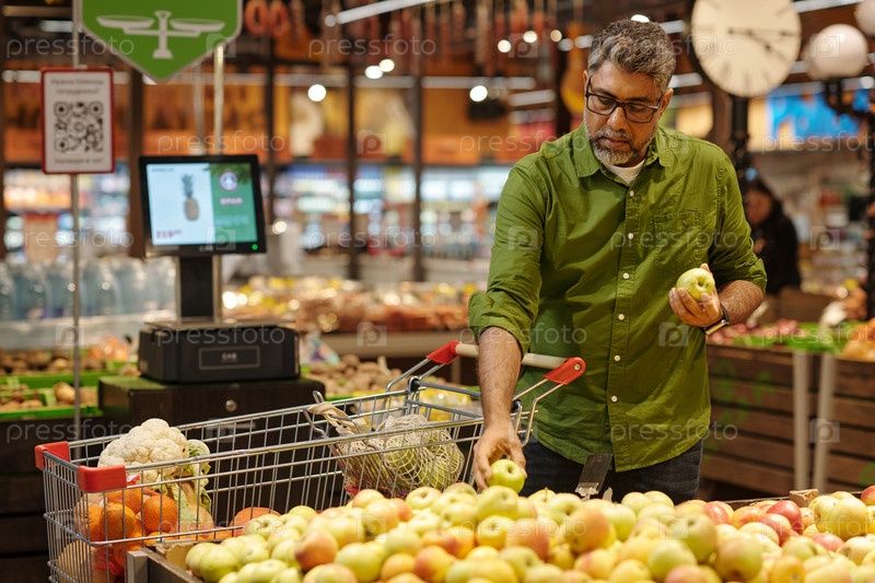 Индийский мужчина покупает в супермаркете