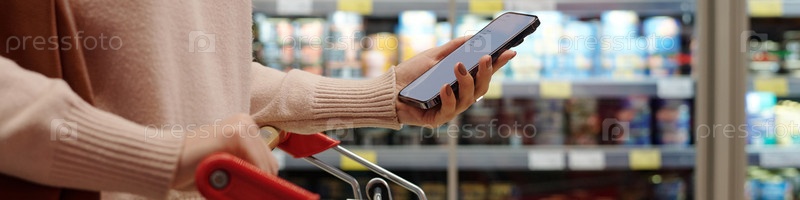 Женщина, делающая продуктовый магазин Покупки Header Format