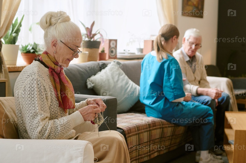 Женщина, наслаждающаяся вязанием