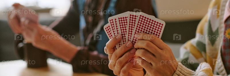 Заголовок с женщиной, держащей карты
