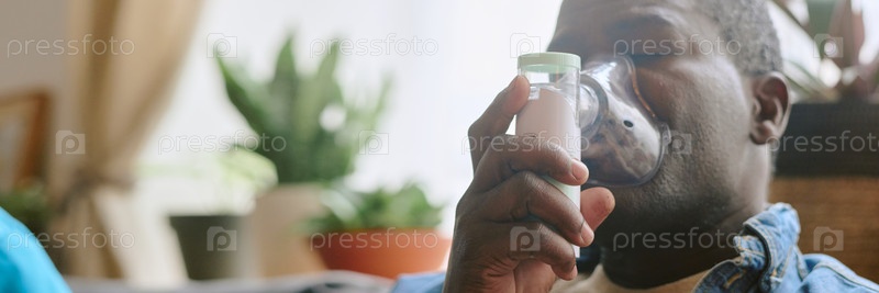 Header with Афроамериканский мужчина, использующий небулайзер