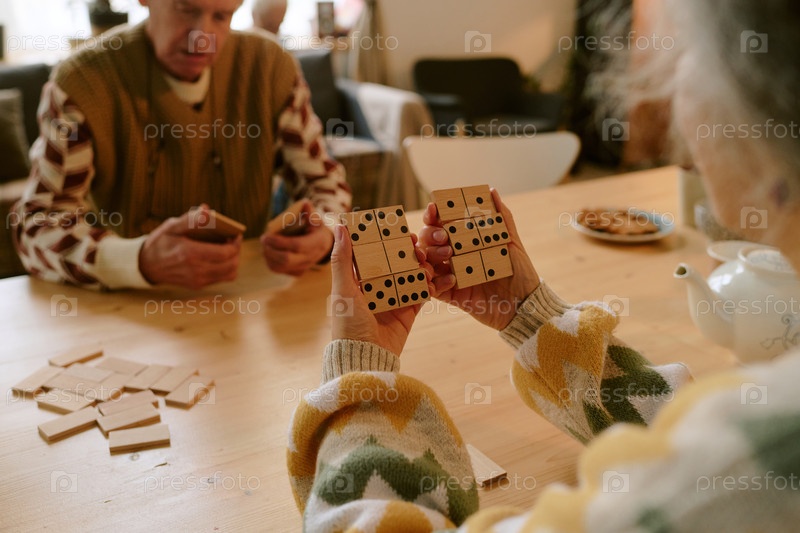 Домино в руках женщины