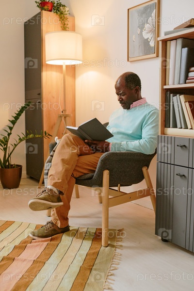 Африканский американец читает книгу в кресле