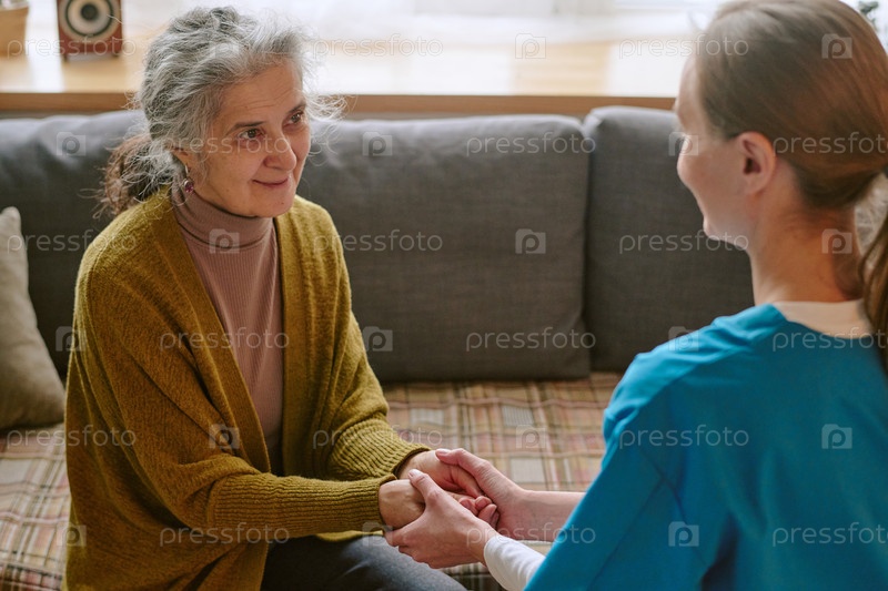 Старшая женщина смотрит на медсестру