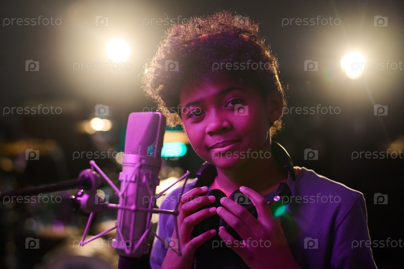 Портрет афроамериканского мужчины-подростка, регулирующего наушники