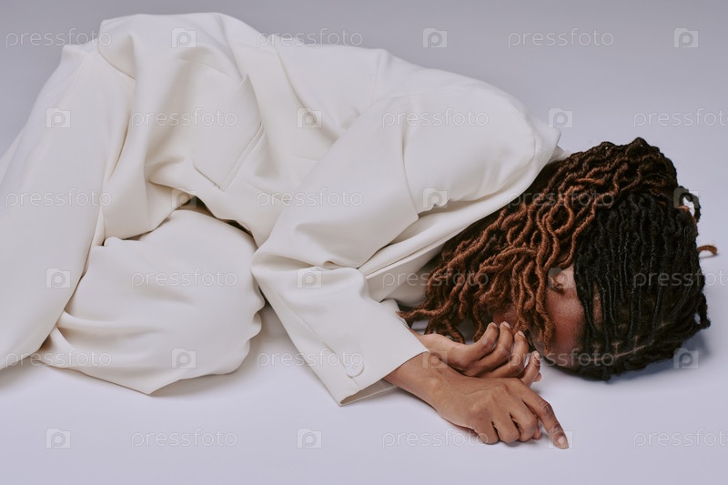 Отдыхающий человек в белом наряде, демонстрируя эмоциональную глубину