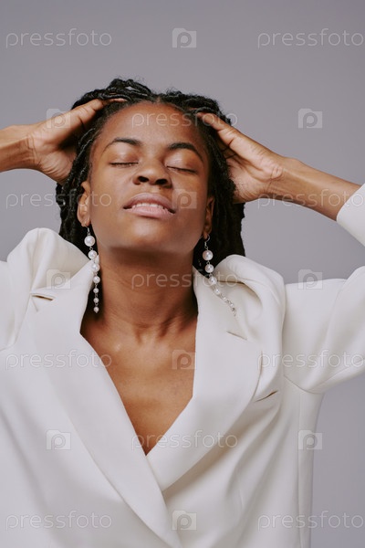 Расслабляющая афроамериканская женщина медитирует с закрытыми глазами