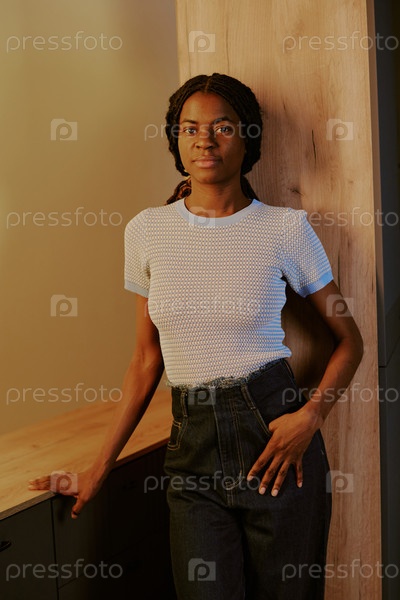 Портрет молодой женщины, опирающейся на деревянную панель