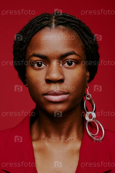 Портрет женщины, носящей серьги на красном фоне