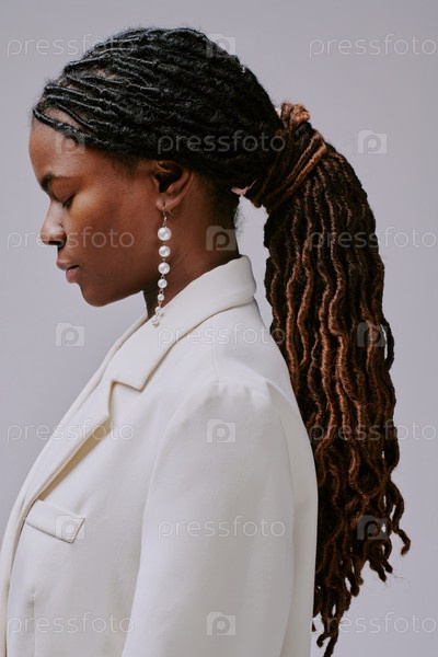 Женщина, носящая белый блейзер с сплетённым конским хвостом
