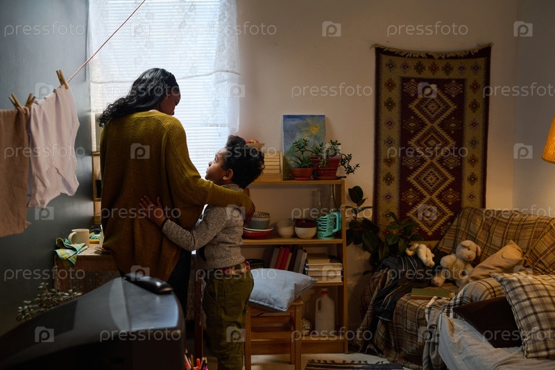 Обнимая маму и ребенка в уютном жилом пространстве
