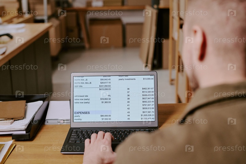 Организация бизнес-финансовых отчетов на ноутбуке на офисном столе