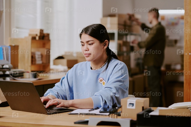 Работа на ноутбуке во время рабочего времени с коллегой, стоящим