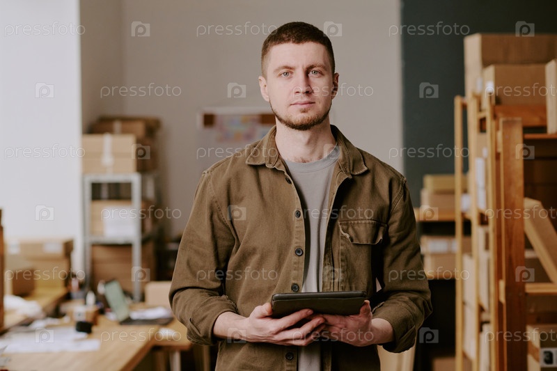 Портрет мужчины, держащего цифровой планшет