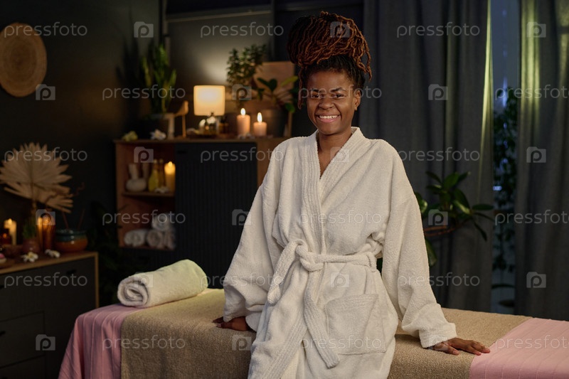 Улыбающийся афроамериканский клиент в халате