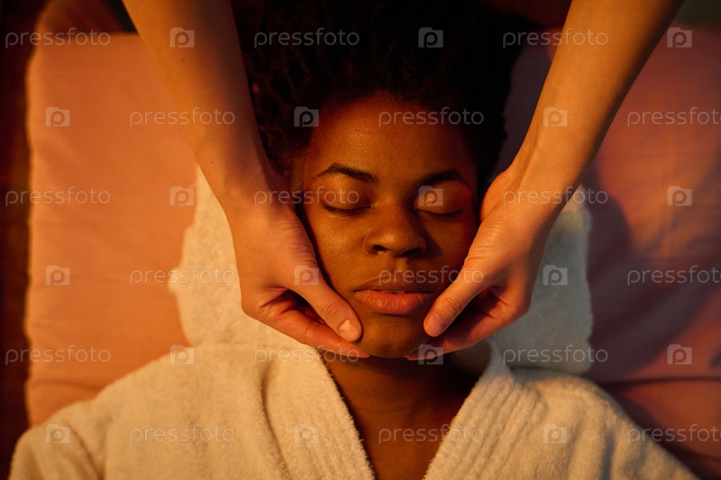 Расслабленная женщина получает массаж лица