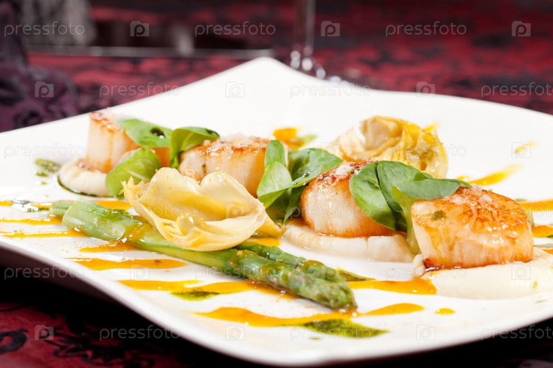Запеченные гребешки со спаржей