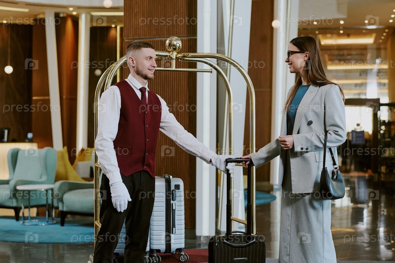 Элегантный Bellboy Greeting Hotel Visitor