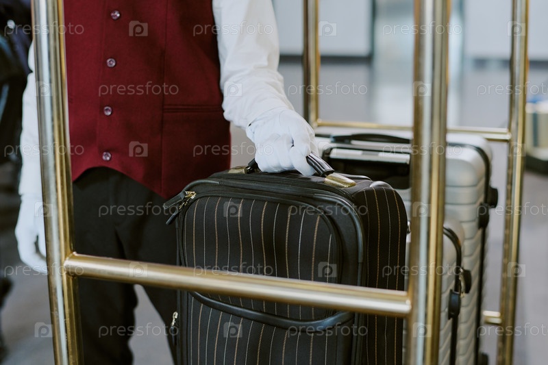 Рука в белой перчатке, берущая багаж Мужчина