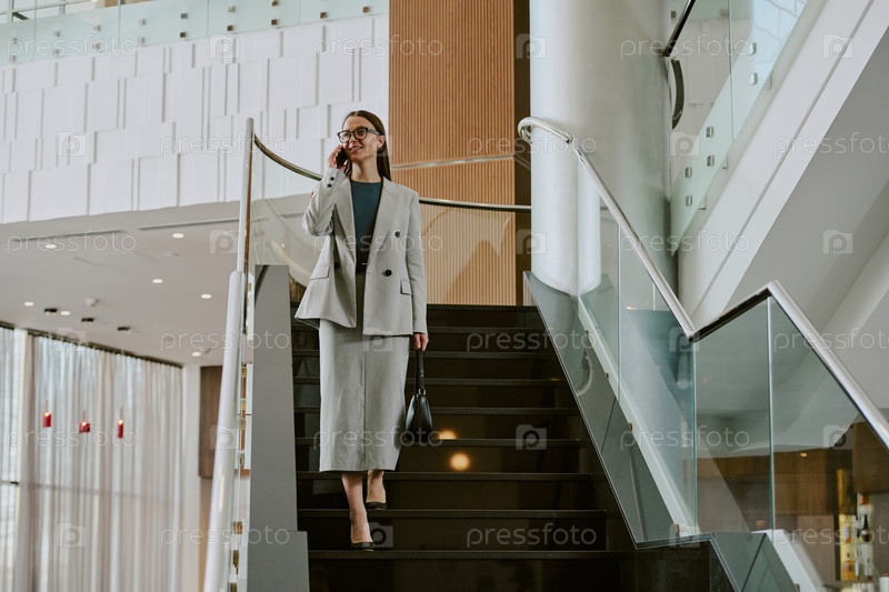 Элегантная женщина спускается по гостиничной лестнице
