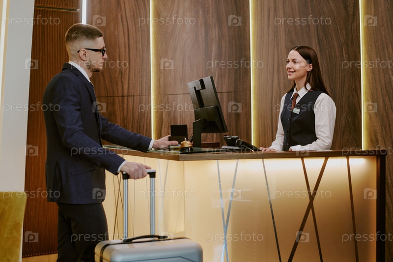 Рецепционист Приветствующий гость отеля