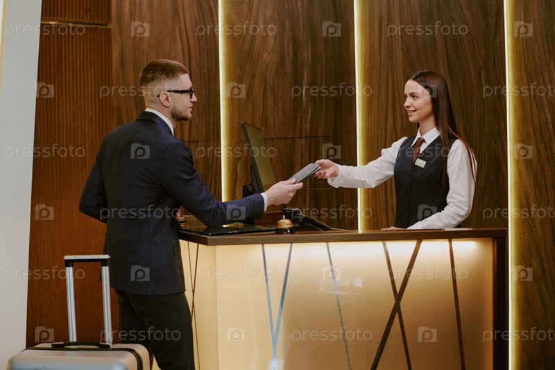 Человек, проходящий регистрацию в отеле