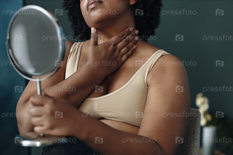 Женщина, применяющая уход за кожей перед ручным зеркалом