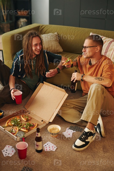 Наслаждаться пиццей и напитками, получая удовольствие от карт