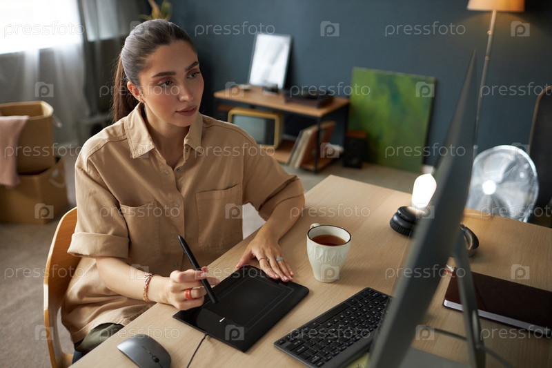 Работа над цифровым искусством с помощью планшета для рисования