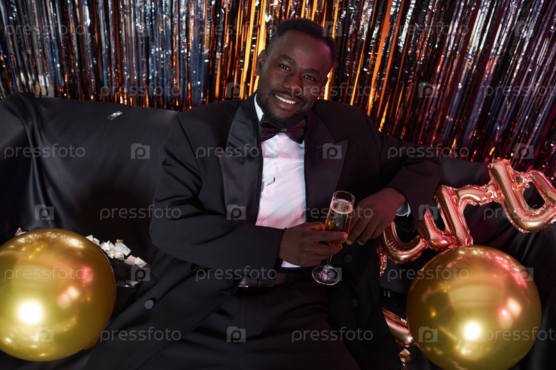 Улыбающийся мужчина держит напиток на праздничном мероприятии