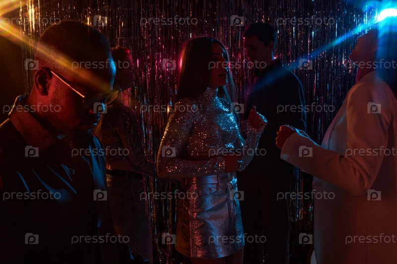 Танцы на вечеринке с блестящими костюмами и друзьями