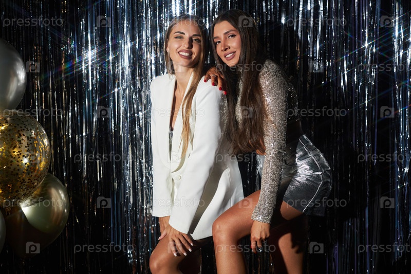 Улыбающиеся женщины позируют на сверкающей вечеринке