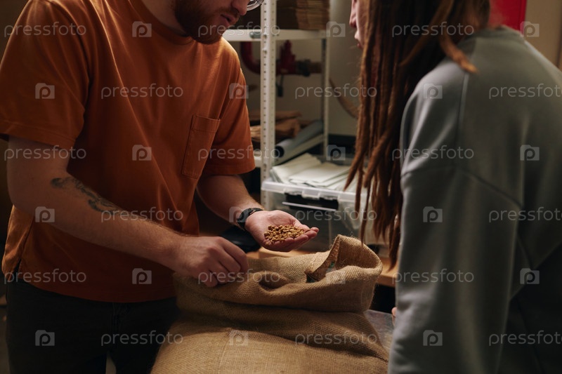 Непризнанные работники кофейной фабрики, осматривающие кофейные бобы