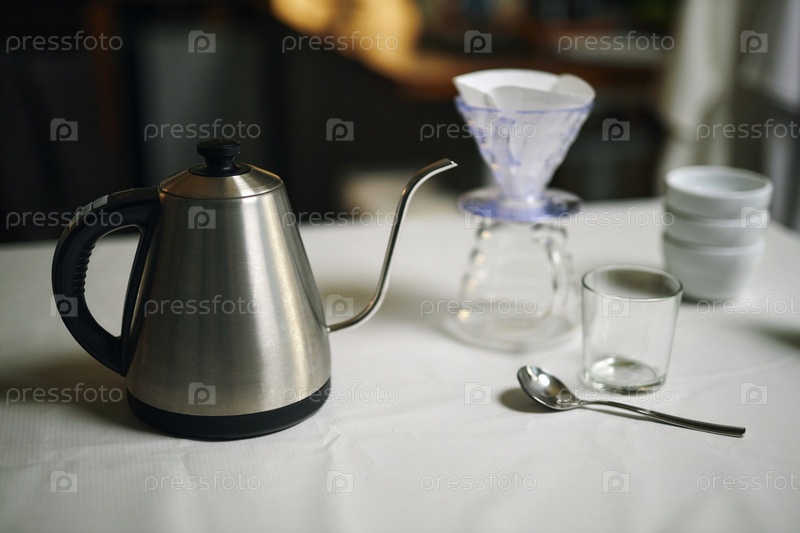 Кетл и ложка на маленьком столе