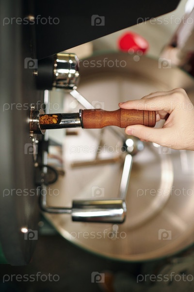 Человек, проверяющий уровень обжарки кофе