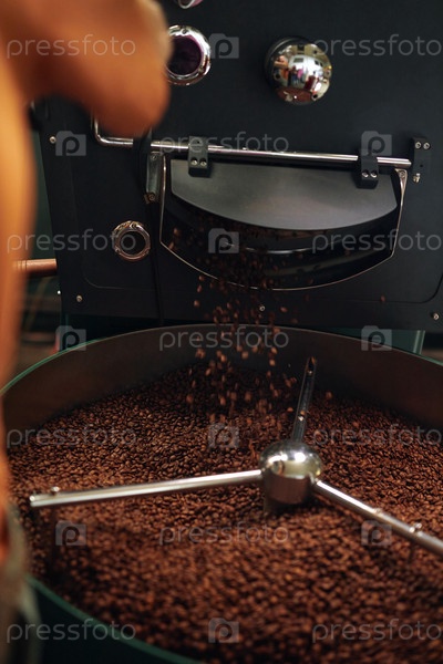 Кофейные бобы обжарены машиной на фабрике