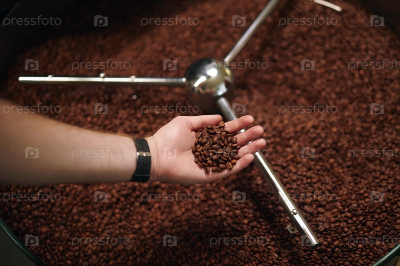 Ручка кофейных бобов в мужской руке