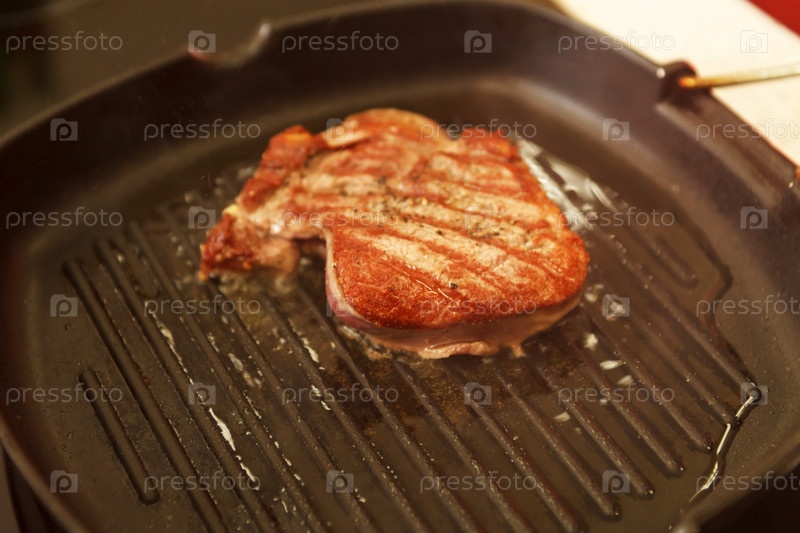 Мясо жарится на сковороде