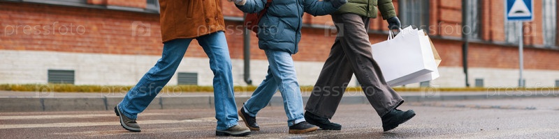 Прогулка вместе по городской улице в зимний сезон