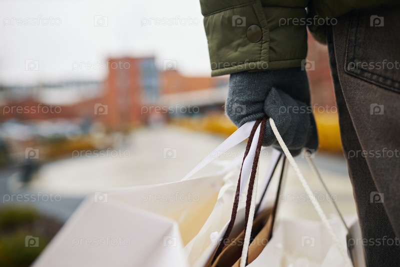 Ношение сумки для покупок в холодную погоду с перчатками на руках