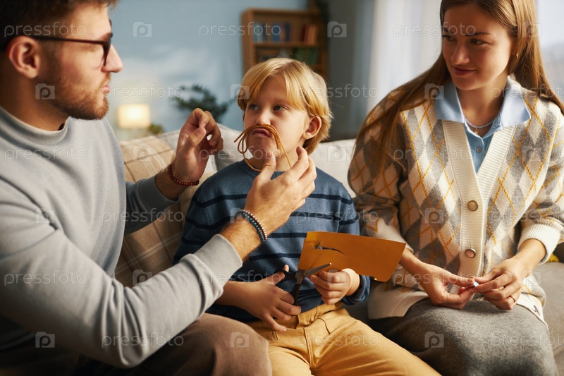 Семья наслаждается ремесленной деятельностью в уютной гостиной