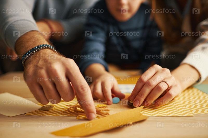 Ближайшее изображение членов семьи, создающих проект DIY вместе