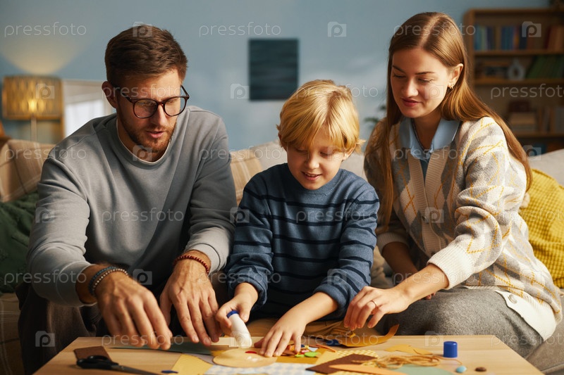 Семья проводит творческое время, занимаясь ремеслами вместе