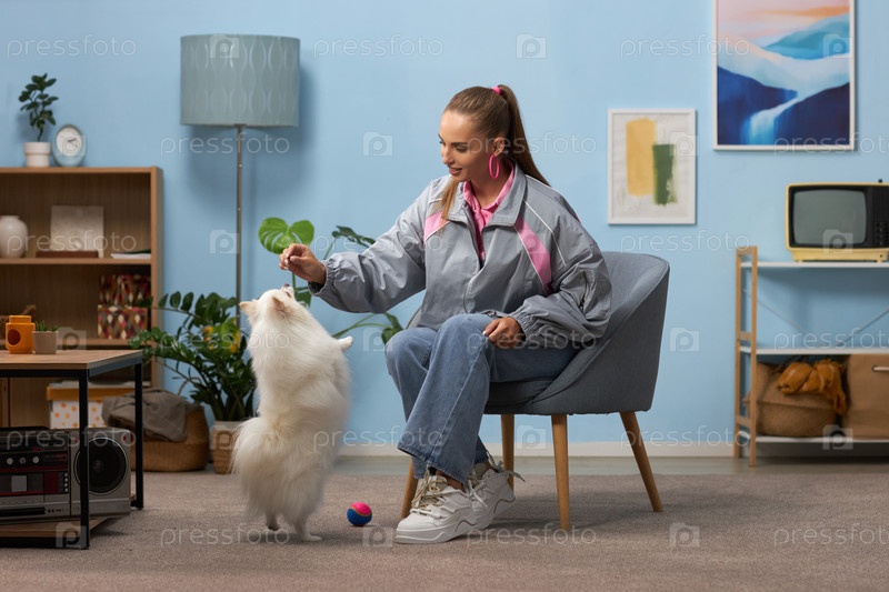 Взаимодействие с домашним питомцем в уютном жилом пространстве